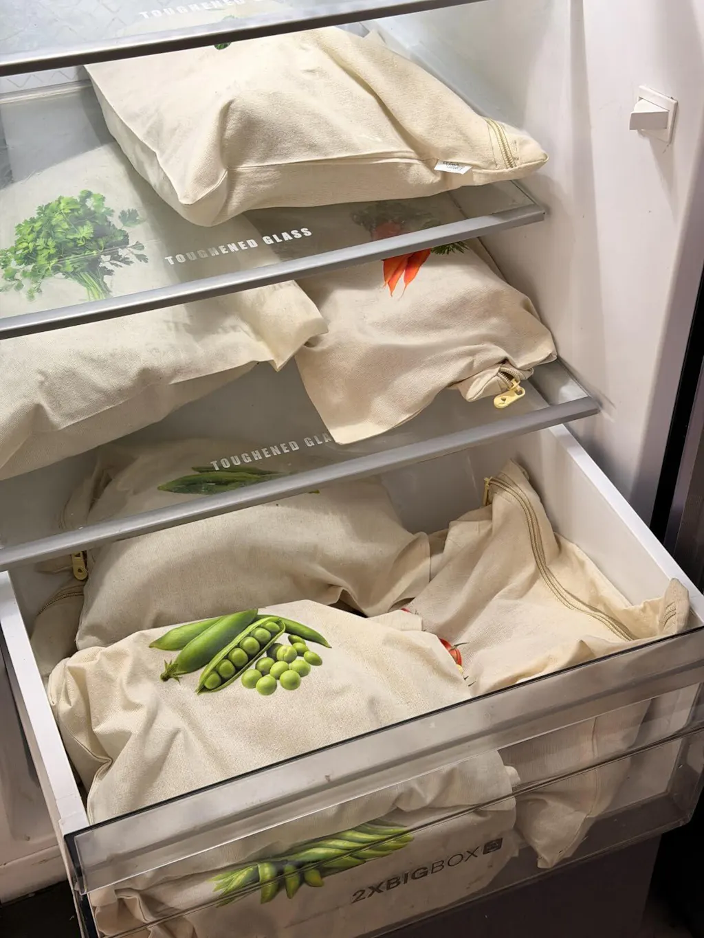 3️⃣ Keep the bag inside your fridge vegetable tray.