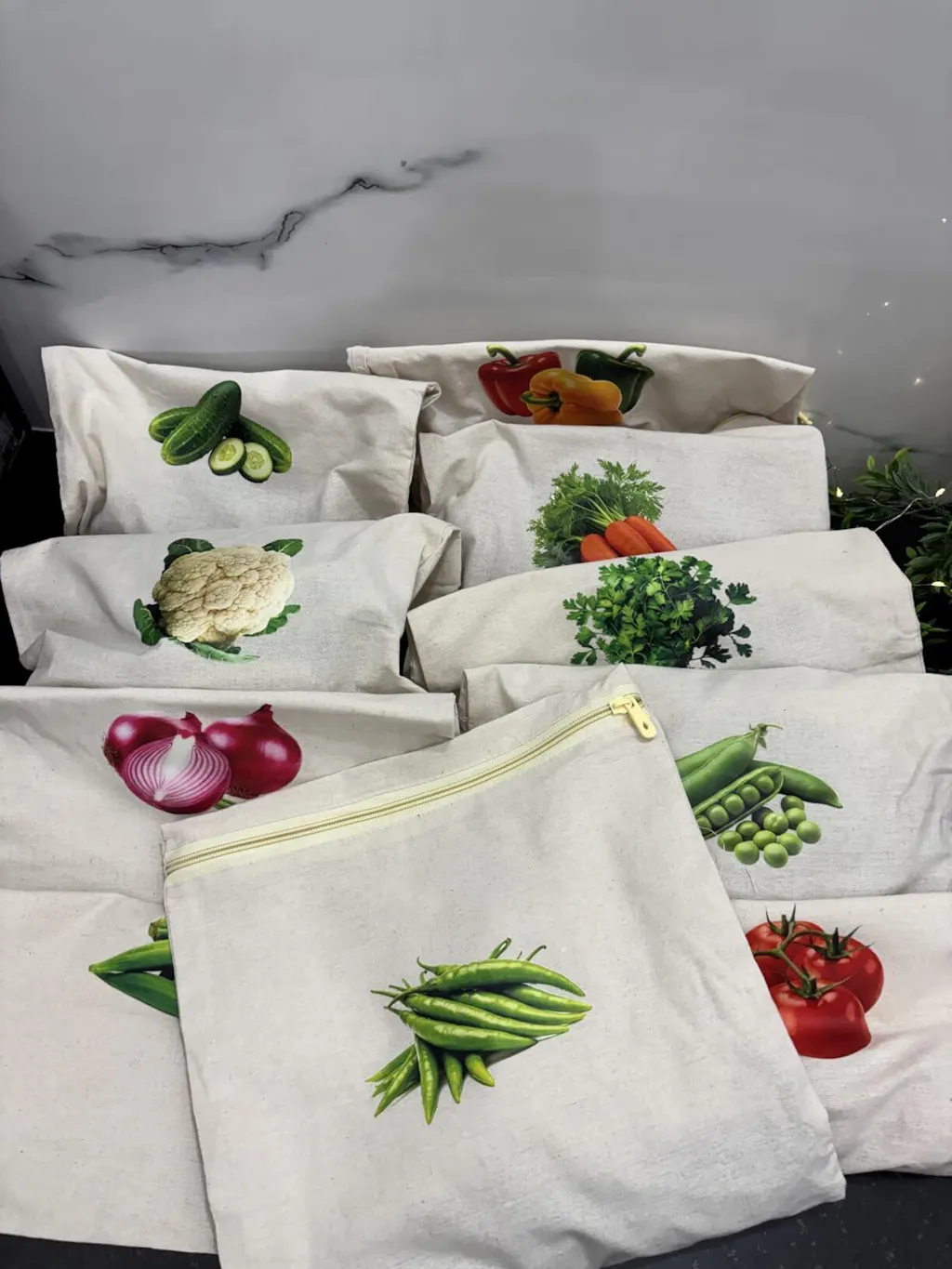 👉 Yes. Cotton fabric allows airflow and keeps vegetables fresh longer.