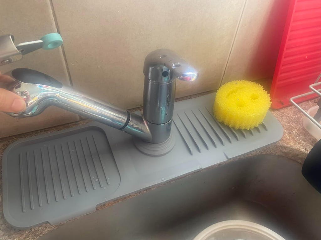 1️⃣ Place the pad right under tap or around the sink.