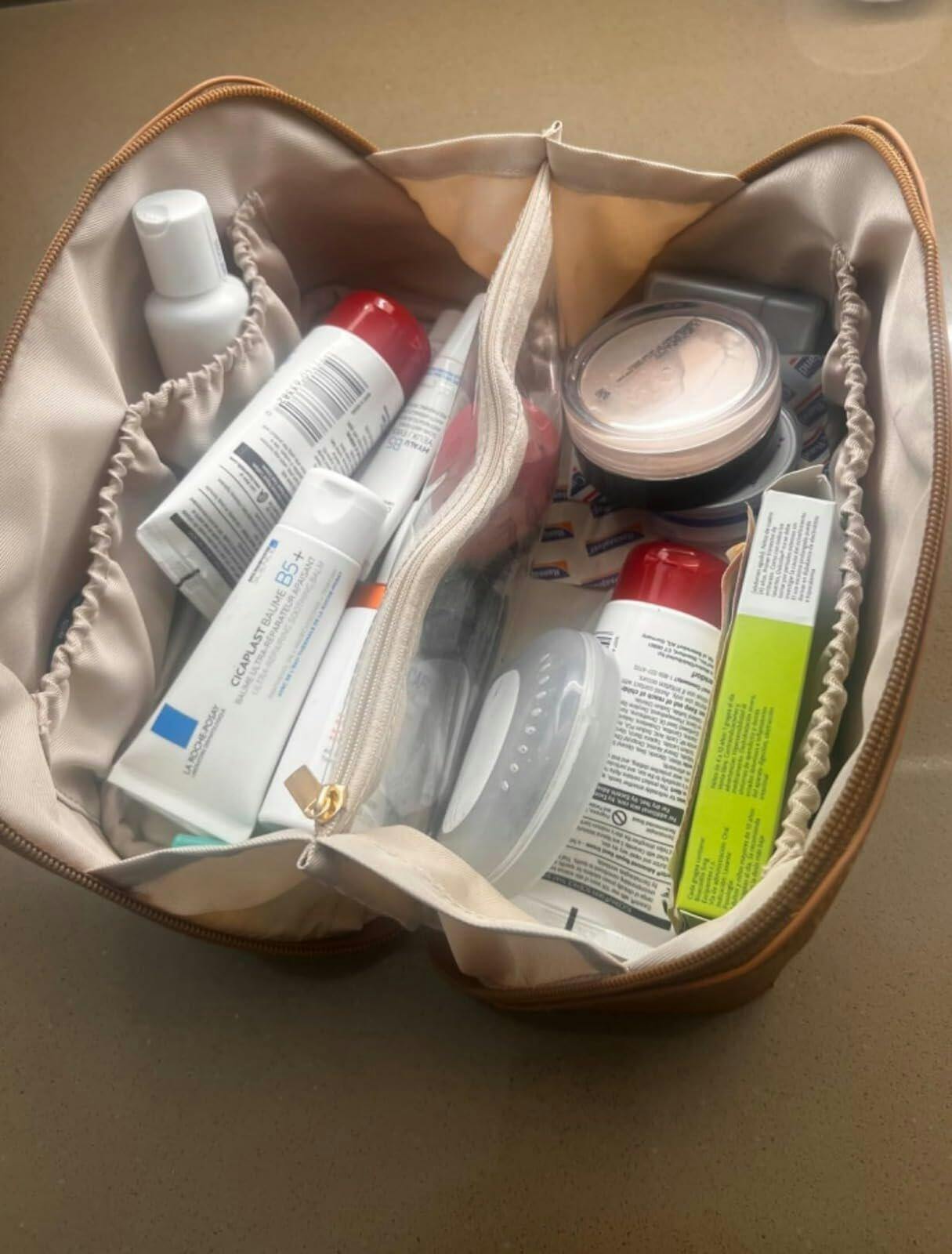 LARGE CAPACITY: Large compact bag brilliantly designed to store and organize your daily essentials.